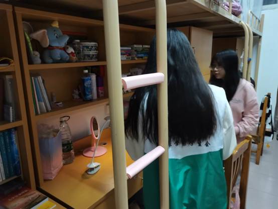 最后,培训结束,检查成员来到宿舍进行认真地检查,不仅对宿舍内务、卫生进行检查,还特别注重检查宿舍的安全状况,着重排查同学们是否使用大功率电器,是否违规私接电线,宿舍走廊是否有障碍物等。
