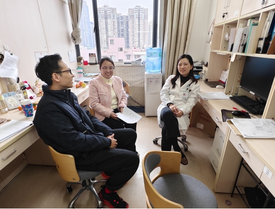 胡明一老师与同学们跟广东药科大学附属第一医院的带教老师进行讨论。
