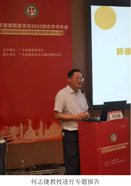 广州新华学院康复医学系呼吸治疗学学科带头人、广东省康复医学会重症康复分会会长、中山大学孙逸仙纪念医院重症医学科主任何志捷教授出席开班仪式,并做专题报告。